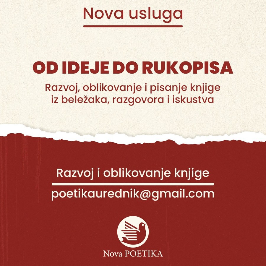 Razvoj knjige u Novoj poetici nastao je iz tog iskustva. Iz susreta sa autorima koji imaju temu, težinu, život i građu, ali traže ritam, kompoziciju i jasan književni pravac. Knjiga ne nastaje prostim sabiranjem stranica. Nastaje onda kada materijal dobije unutrašnju logiku i pun izraz.